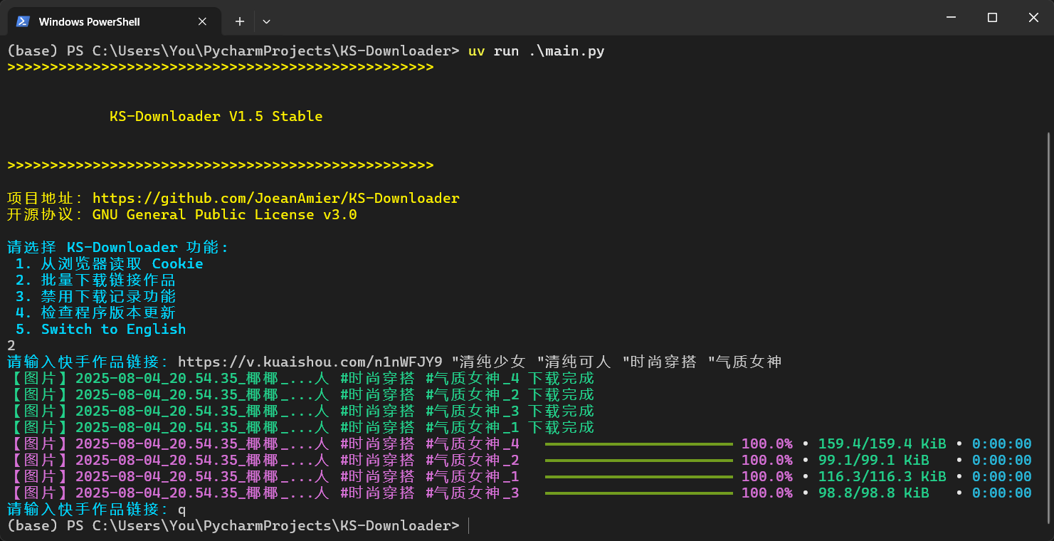 uv run main.py命令启动 KS-Downloader