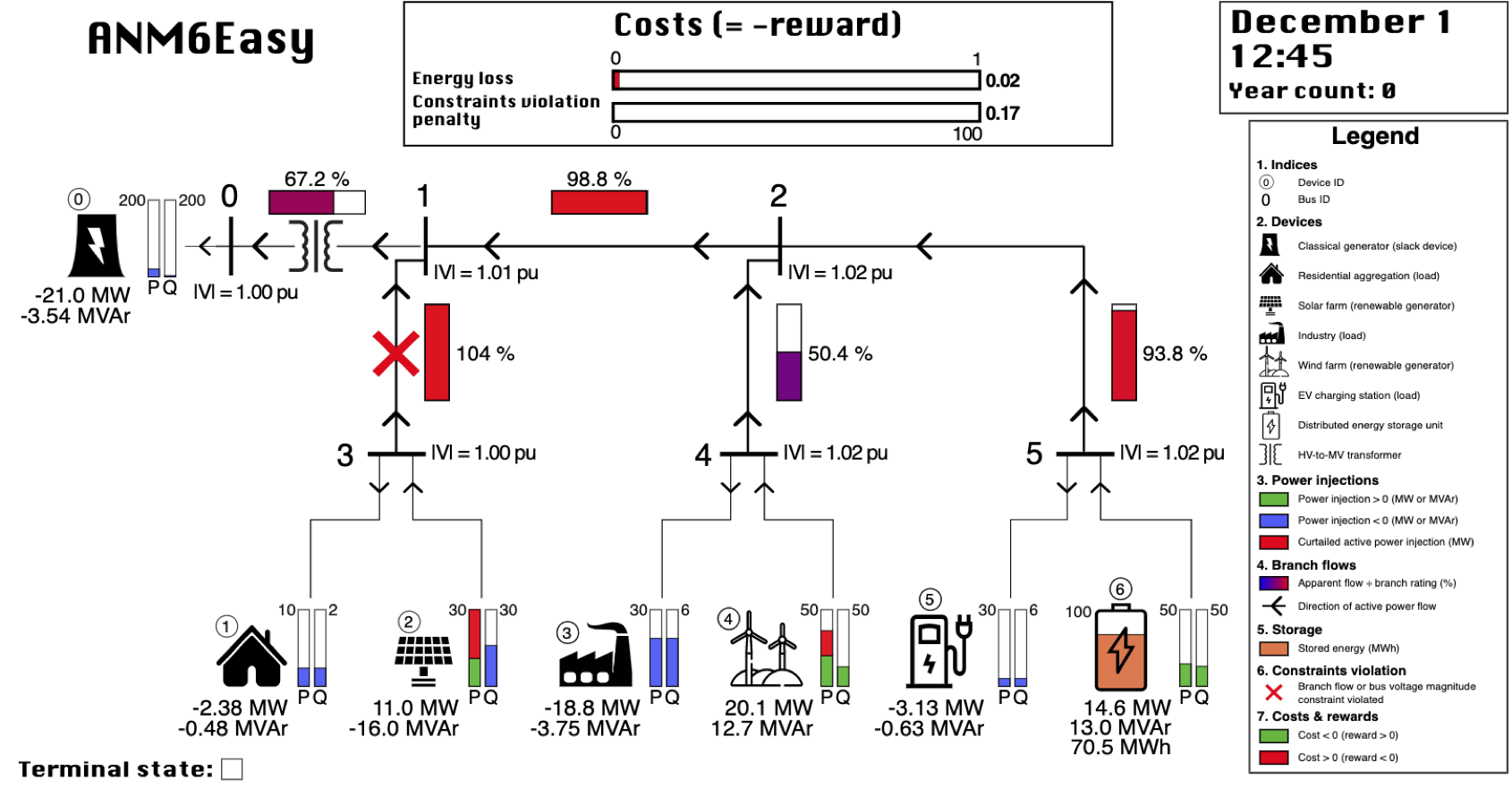 Environments that model Active Network Management (ANM) tasks in electricity distribution networks.