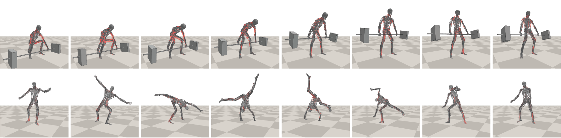 Customizable female and male human models. 40 actuated human joints (head, torso, arms, waist, and legs).Realistic human joint limit.