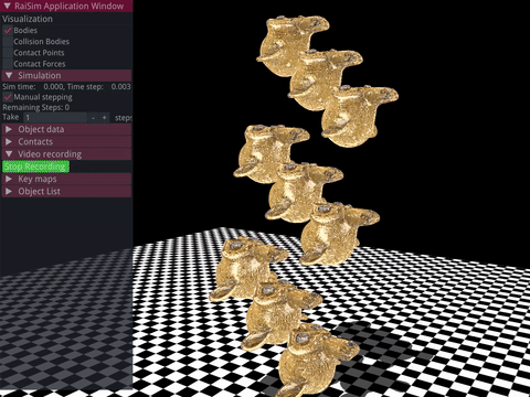Raisim is a physics engine for rigid-body dynamics simulation.