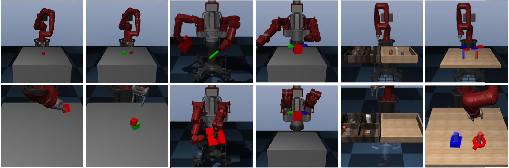 50 diverse robot manipulation tasks on a simulated Sawyer robotic arm.