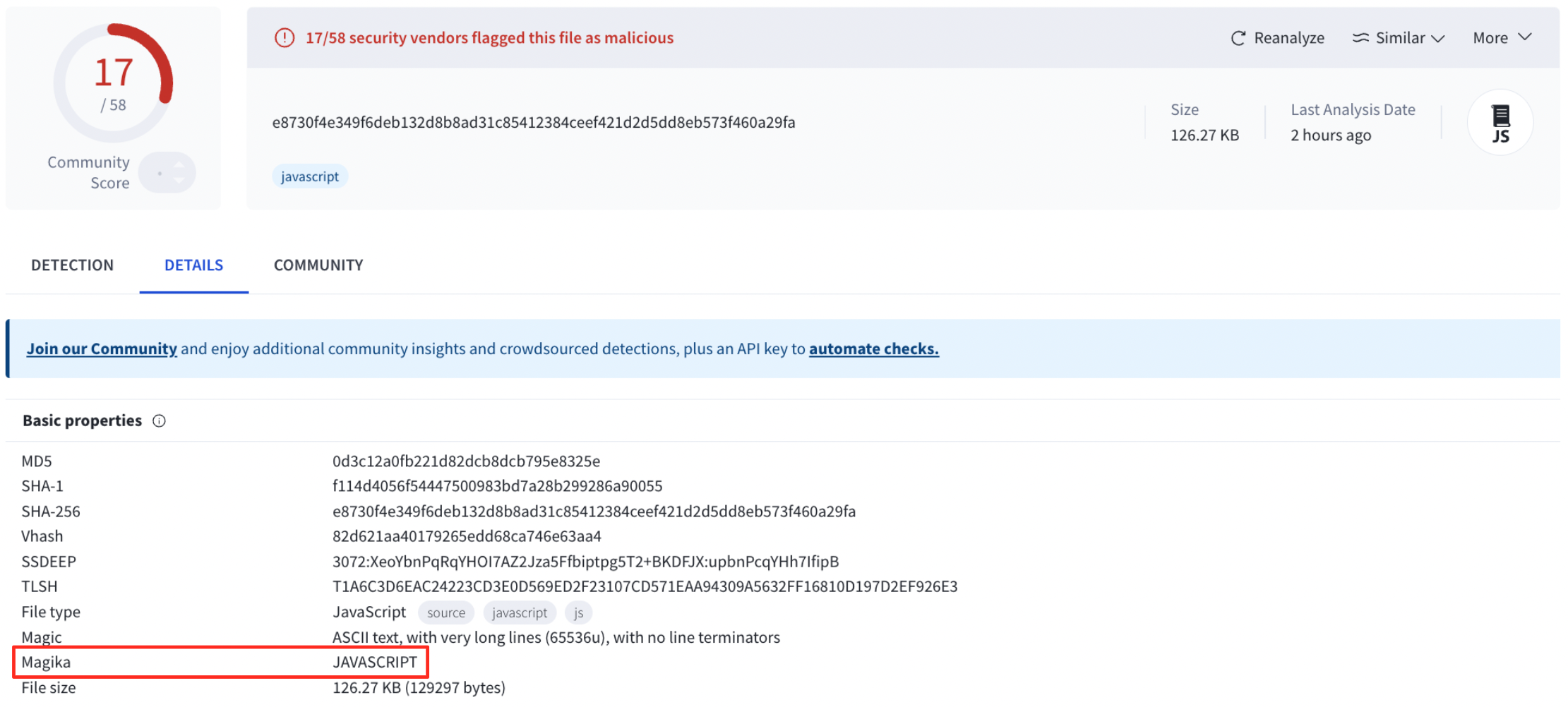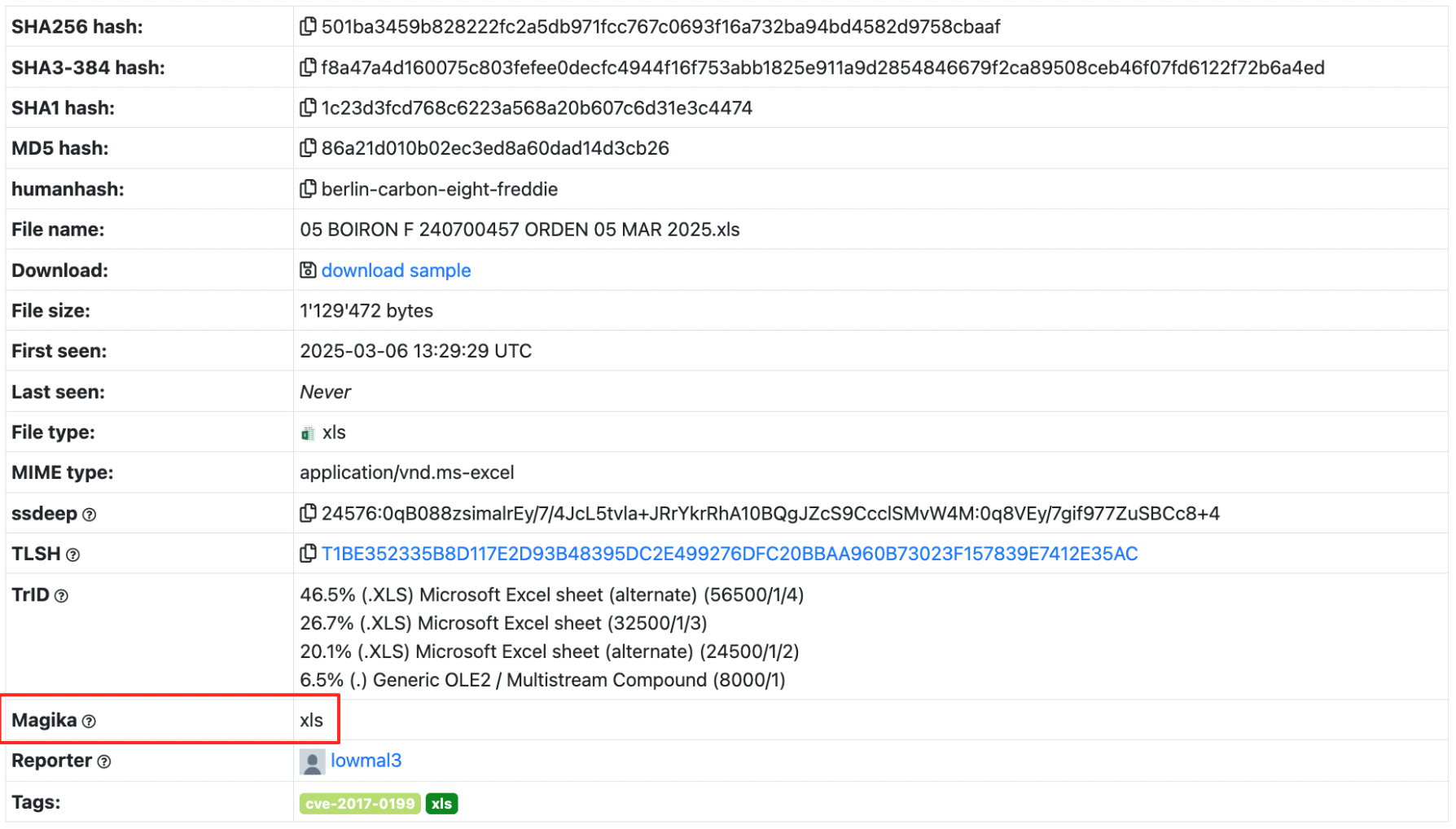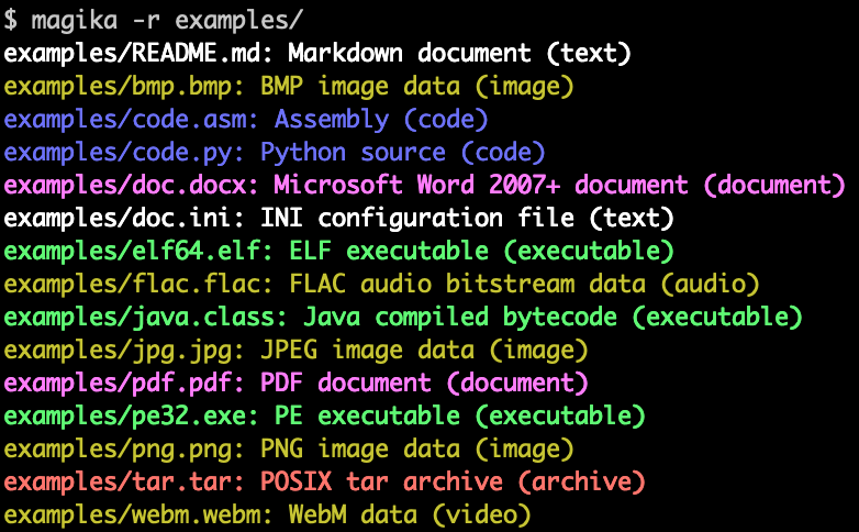 Here is an example of what Magika command line output looks like: