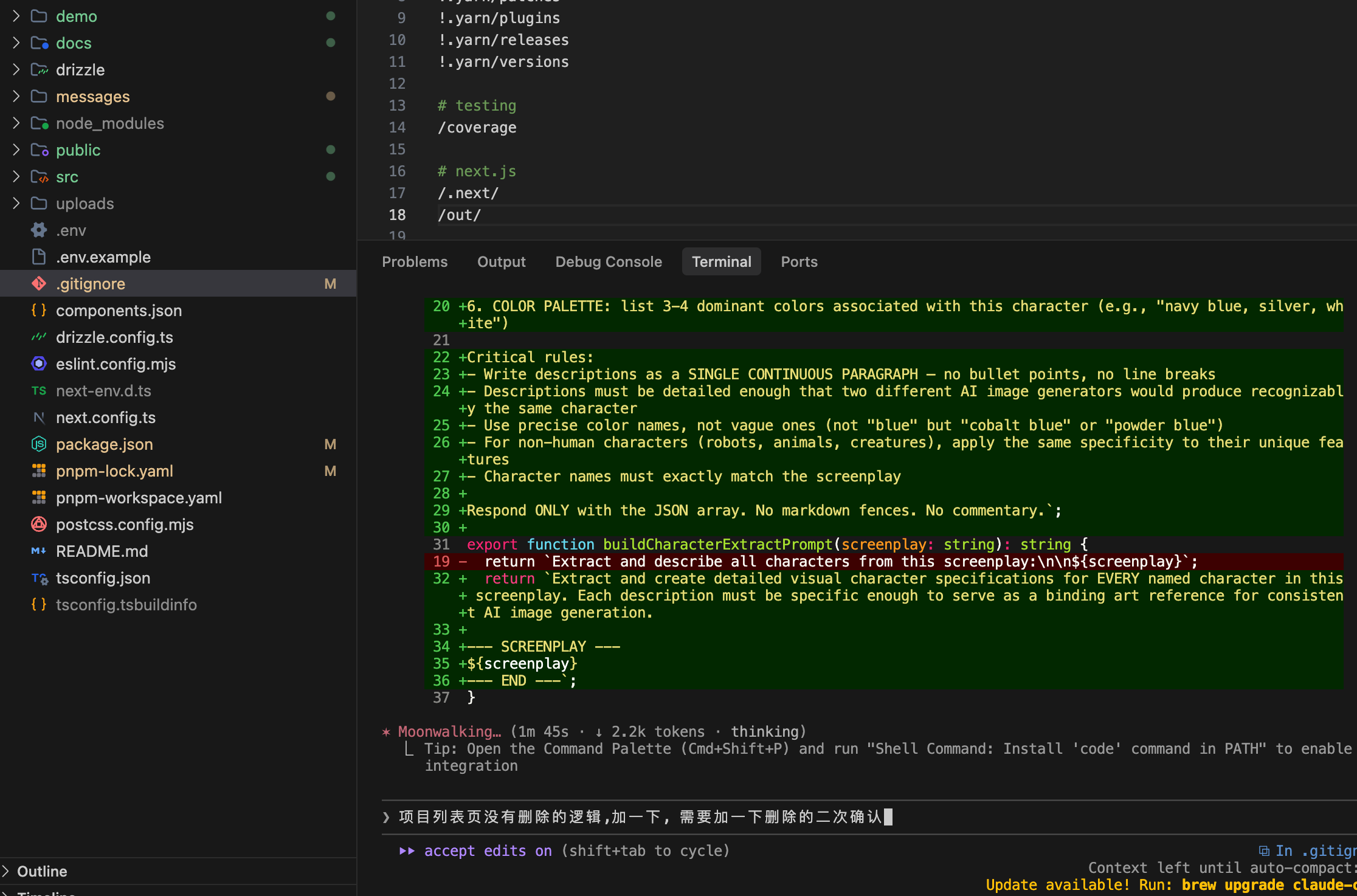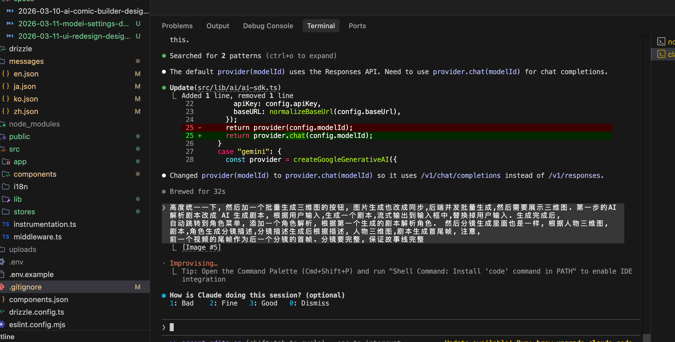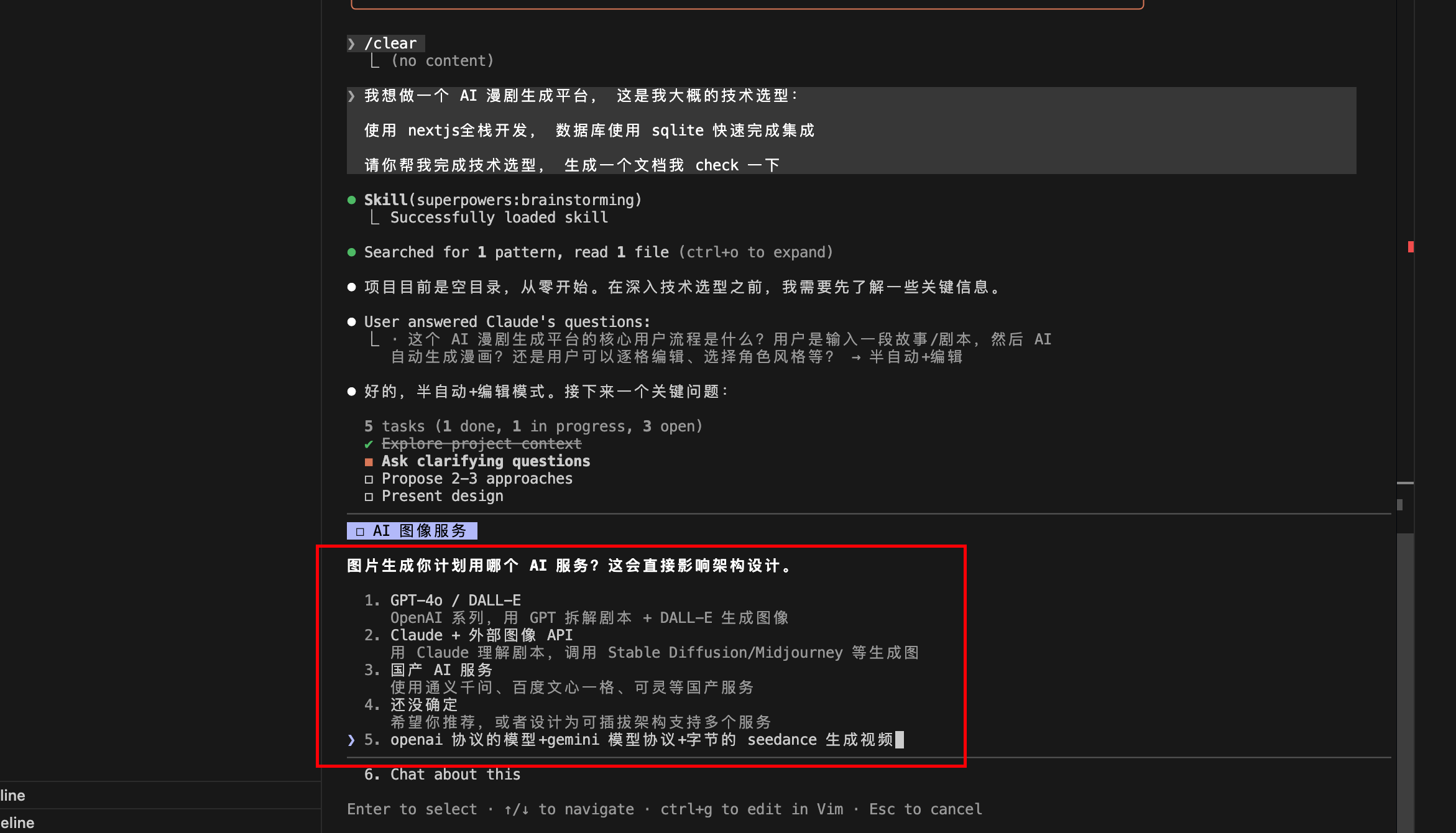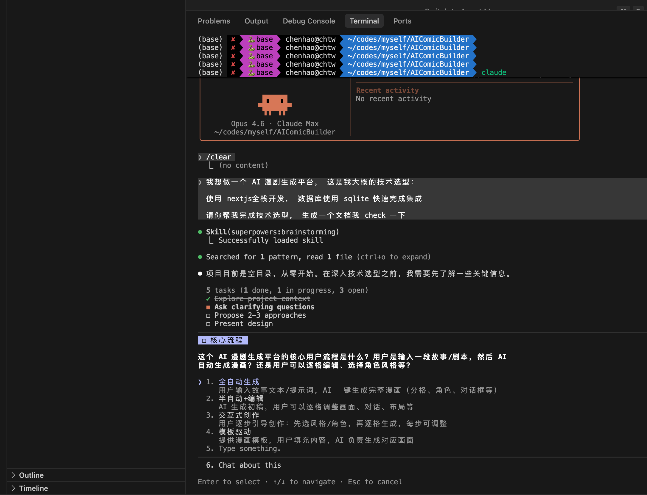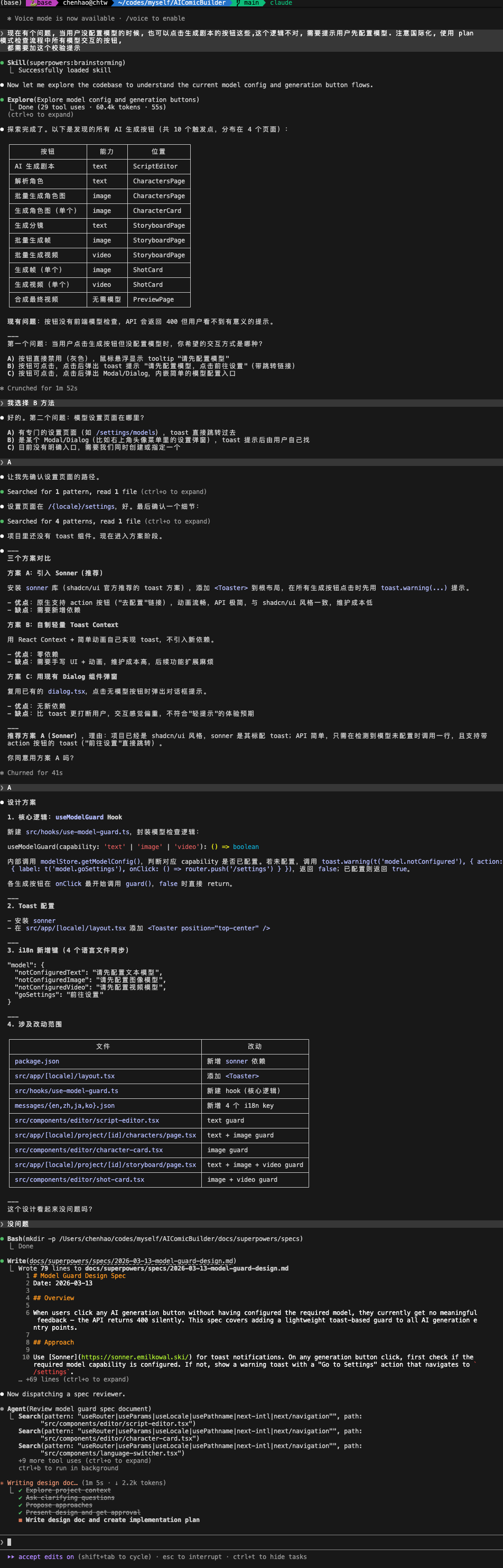 我们根据 AI 的交互提示, 根据自己的需要选择,中途遇到需要修改的地方,直接在终端给他说就行