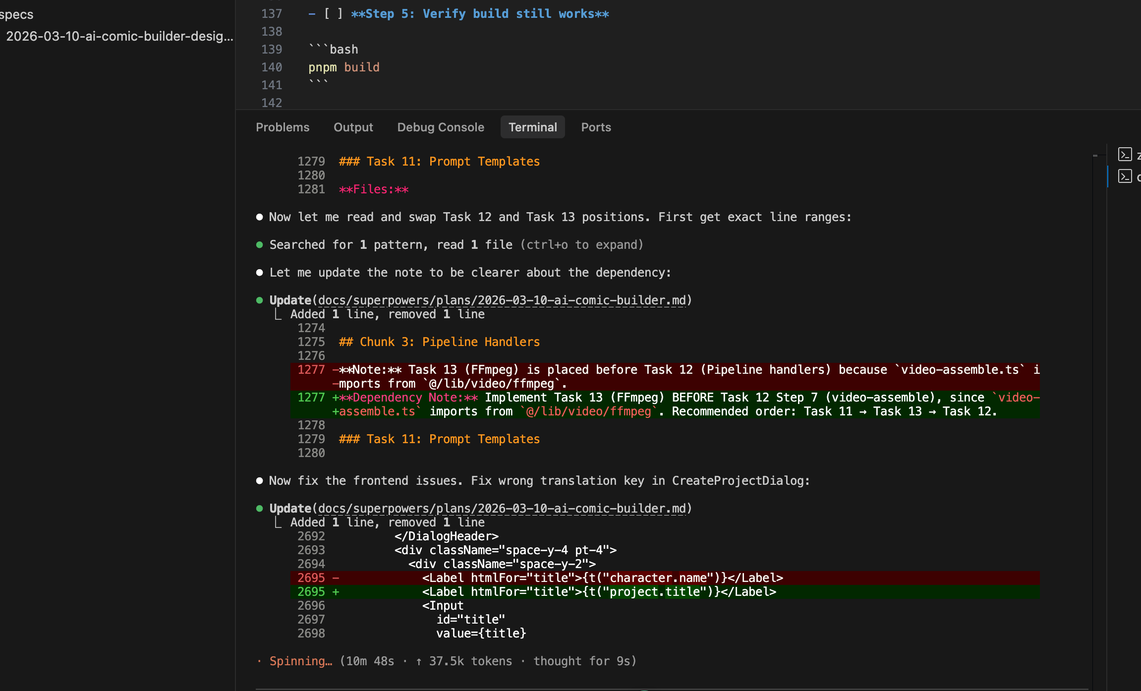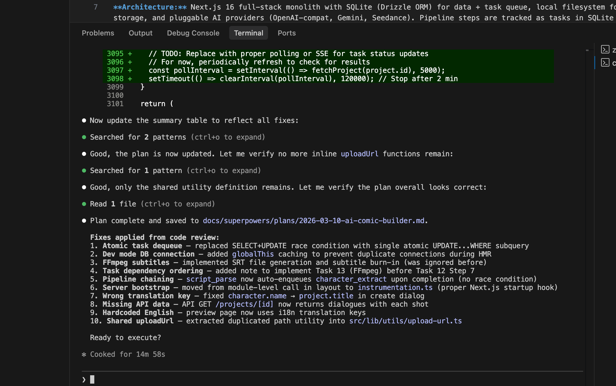 这里 AI 会自动对他刚刚生成的 plan 进行 review。有不合理的地方,他会自己进行二次修改。