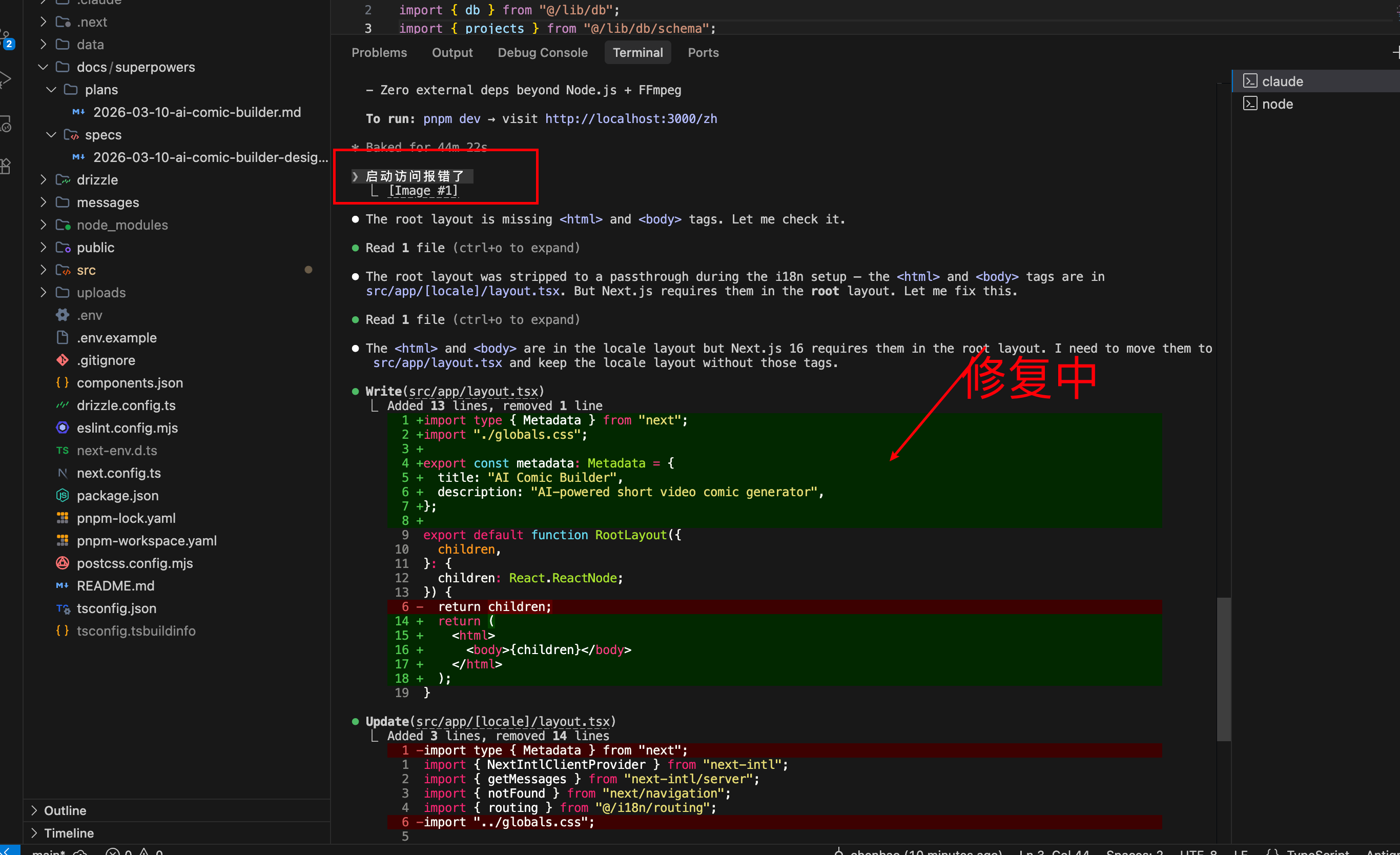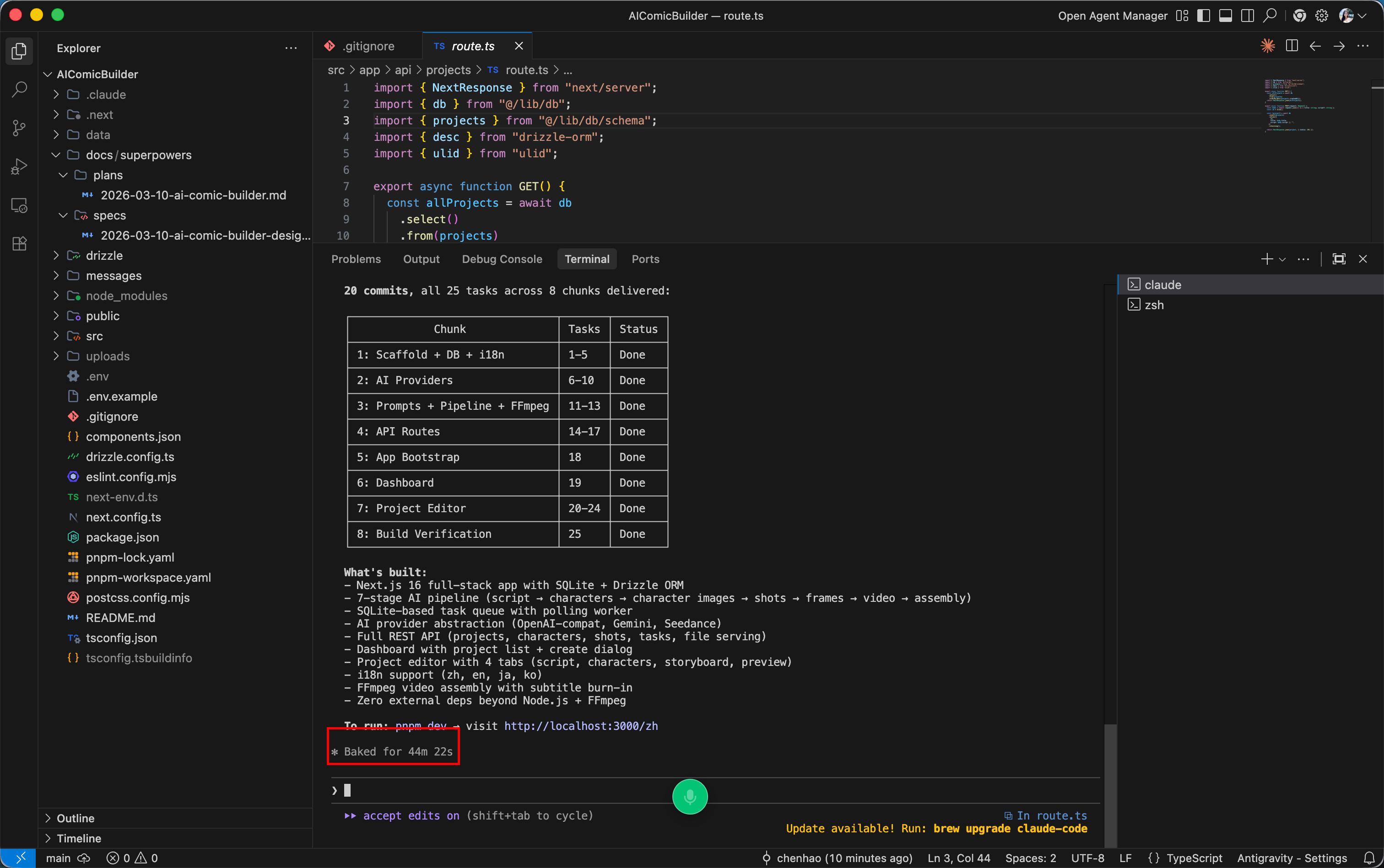 项目结构开发完成后, 他自动开始往我们的项目里面补功能, 比如,队列处理和数据库的集成