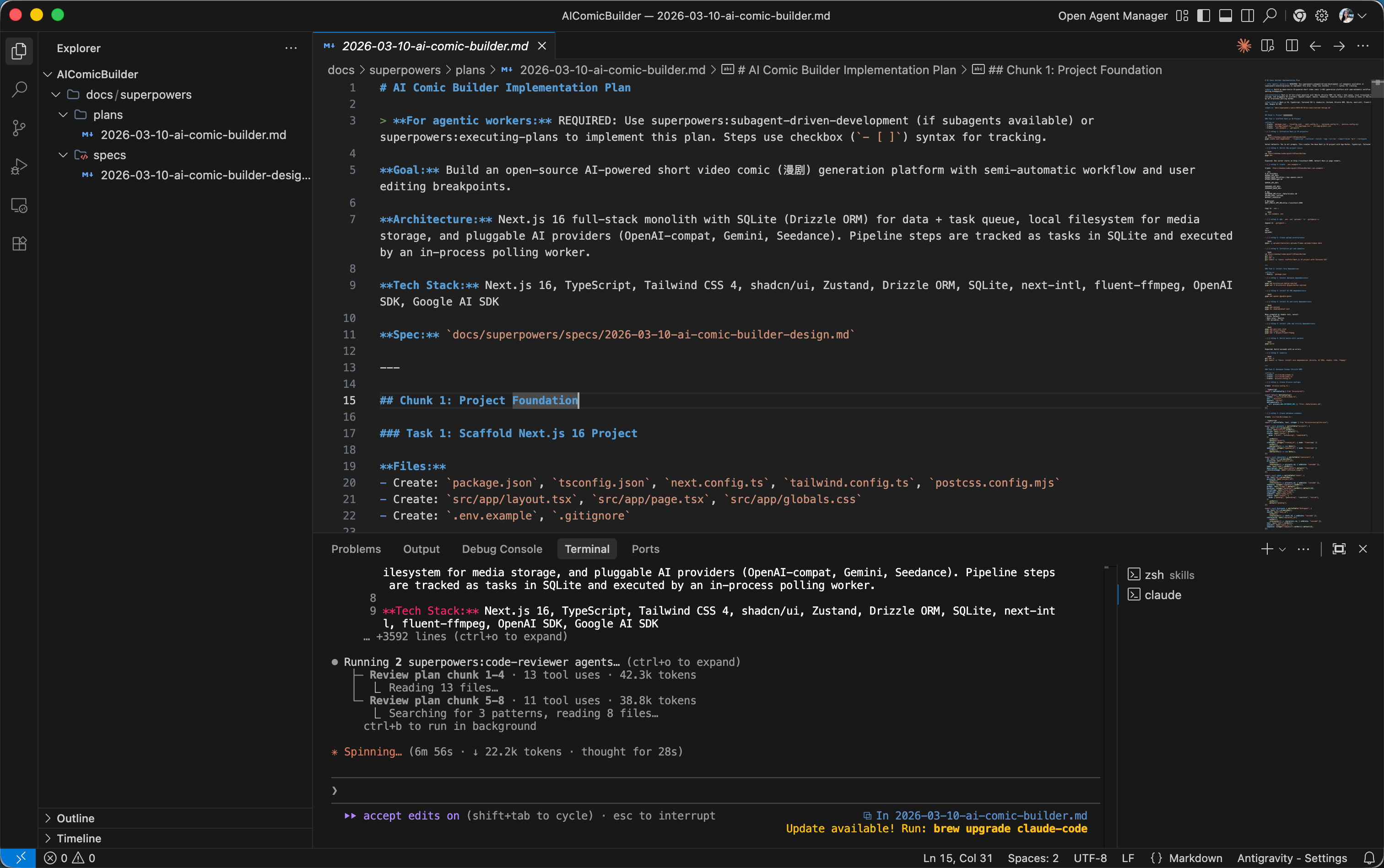 - 开发阶段:通过 Skills 和 Subagent 驱动开发,AI 自动完成代码编写和 Git 提交