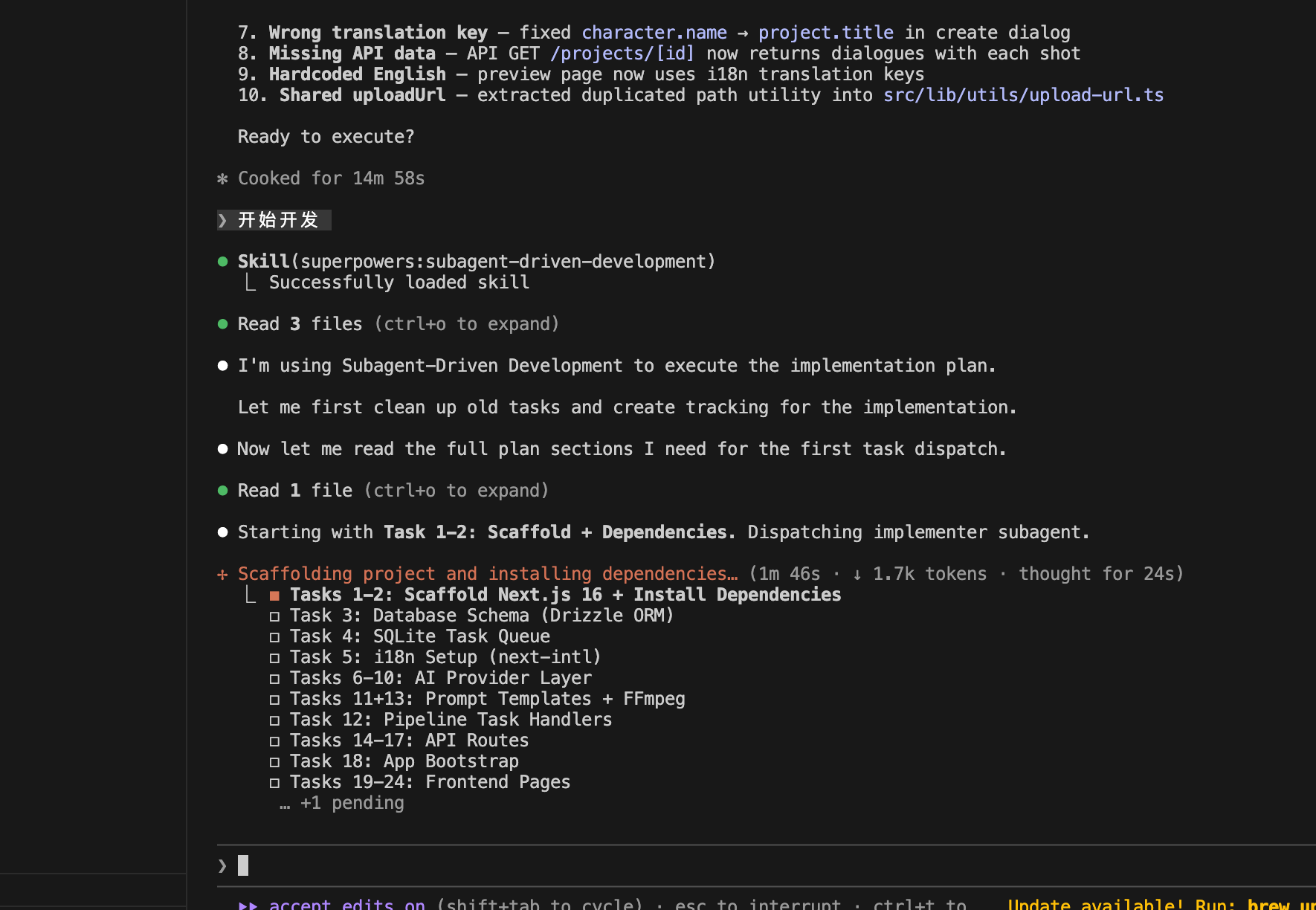 加载superpowers:subagent-driven-development开始开发