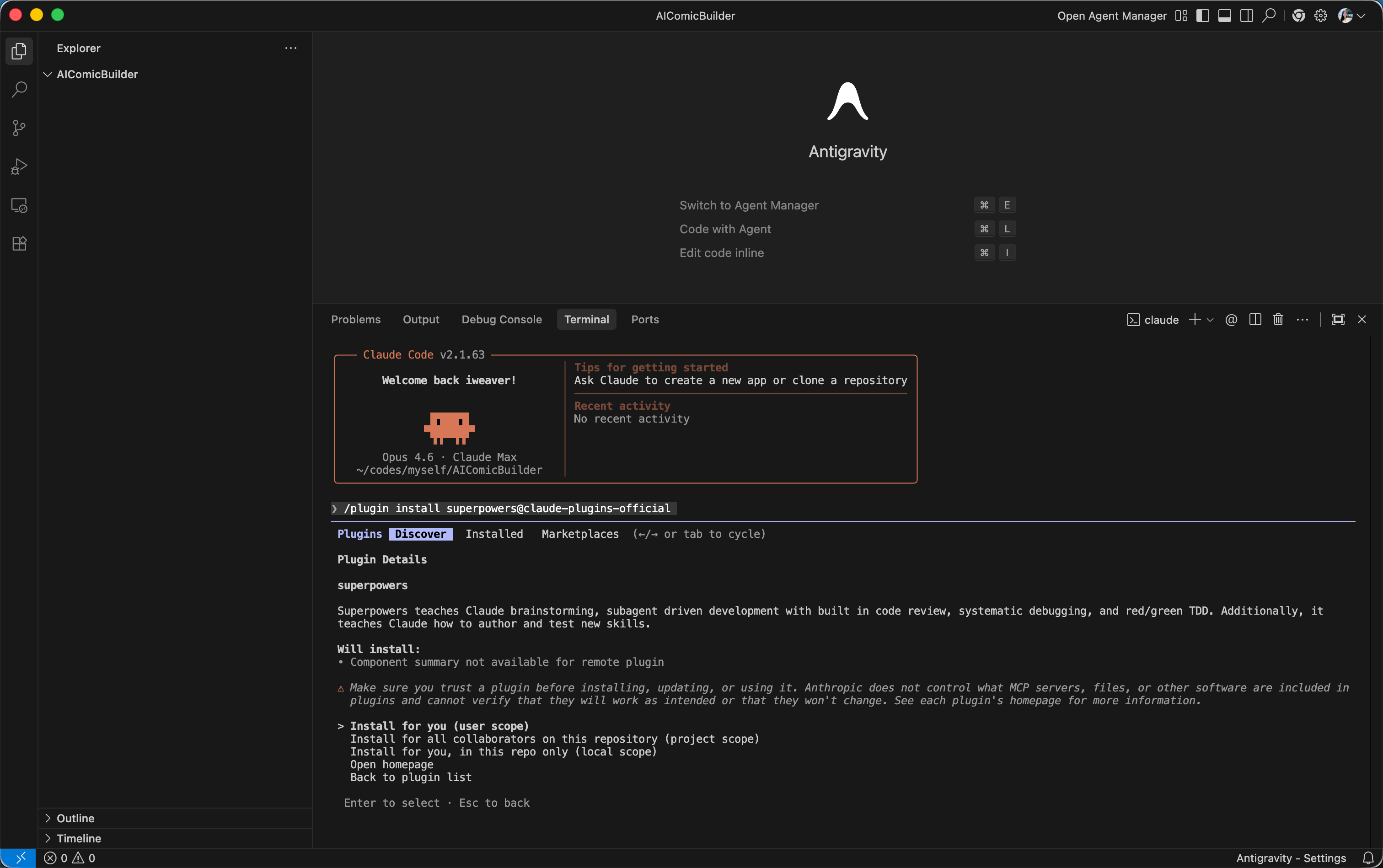 使用 superpowers skill 开发有一个好处, 他每一次开发完一个功能会 commit 一次,这样即使 ai 把代码改坏了,我们也可以方便点回退